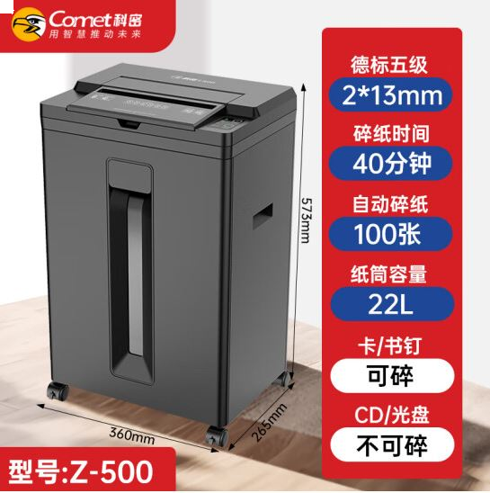 • 科密 全自动碎纸机 5级高保密全自动100张 手动8张 持续40分钟 22L 3m/minZ-500