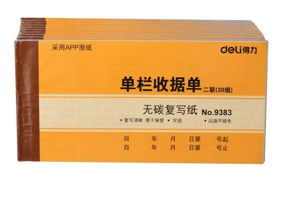 • 得力 9383/9382 收据单 通用财务凭证 单据票据 办公用品 单栏收据单二联