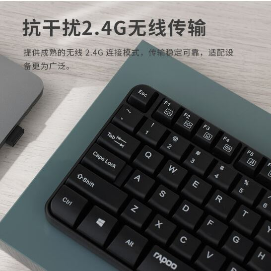 • 雷柏(Rapoo) E1050 无线键盘 办公键盘 紧凑键盘 防溅洒设计 笔记本键盘 电脑键盘 黑色