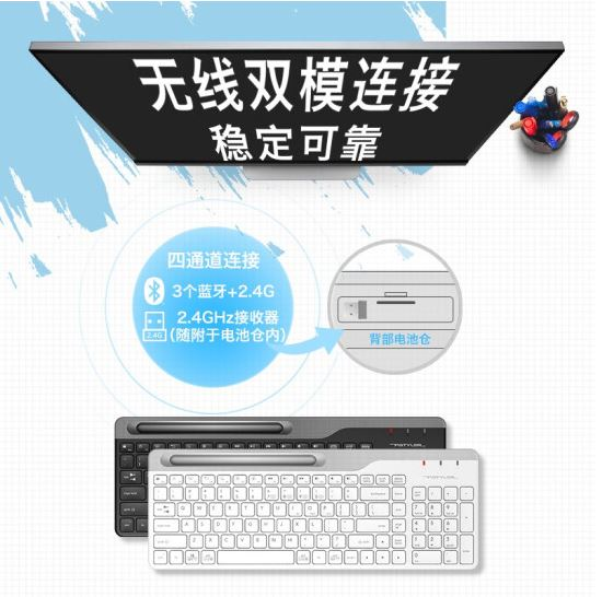 双飞燕 FBK25 无线蓝牙键盘 ipad平板手机笔记本电脑外接办公通专用短款便携键盘飞时代 遂空灰