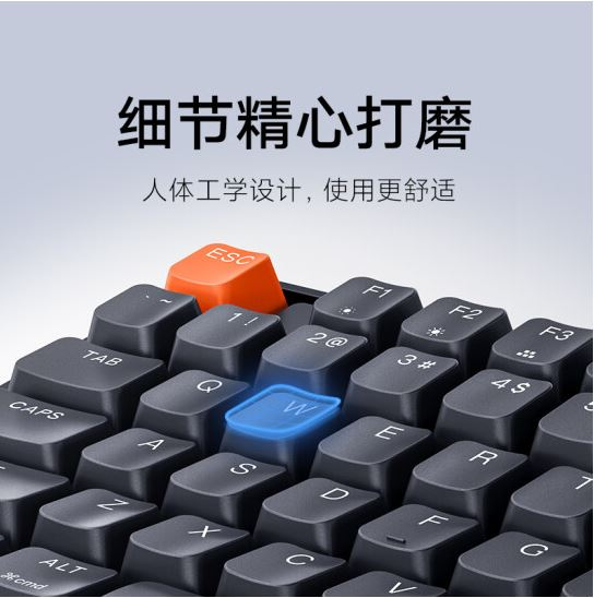 小米 有线机械键盘红轴 104全键紧凑布局设计 兼容Windows/macOS双系统 26键无冲